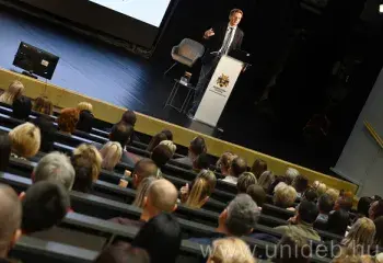 A daganatok megelőzése nem a szűrésekkel indul, mindenkinek nap mint nap tennie kell apró tényezőkkel egészségéért – fogalmazta meg Schwab Richárd a Debreceni Egyetem Gazdaságtudományi Kar és a T5 Media Agency közösen szervezett előadásán. Az ismert belgyógyász-gasztroenterológus telt ház előtt ismertette a meghatározó életmódtényezőket a Böszörményi úti campus színháztermében.