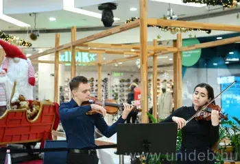 Négy héten át zenélnek a Debreceni Egyetem Zeneművészeti Kar hallgatói a Csapó utcai bevásárlóközpontban. A ZK csaknem száz oktatója és hallgatója lép fel a FÓRUM Debrecen színpadán, mintegy húsz klasszikus zenei koncerttel varázsolják el a vásárlókat és osztják meg velük a karácsony meghitt hangulatát.